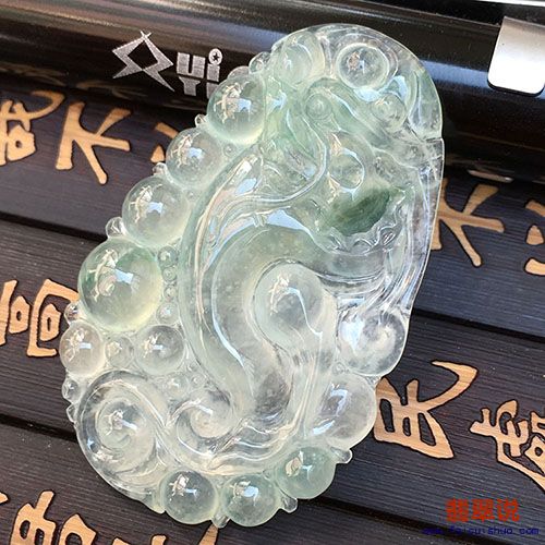 3.缅甸玉天然a货高端翡翠冰种飘花生肖龙牌吊坠 正品玉坠挂件