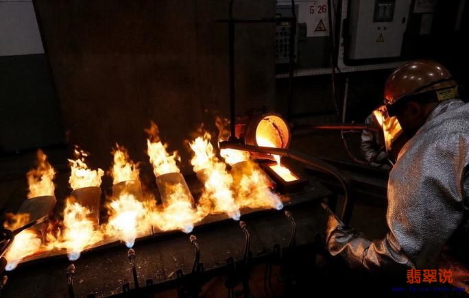 模具中的银条,火光熊熊。