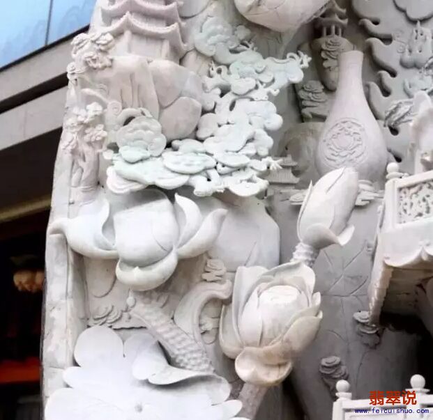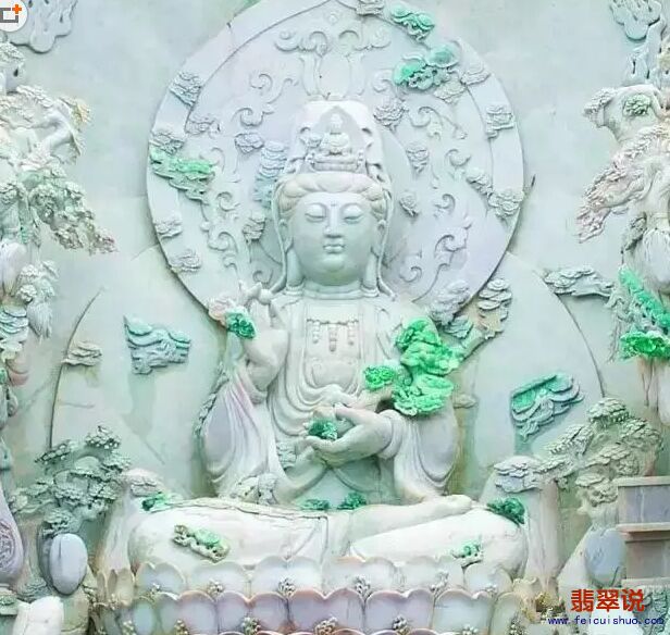 据说该作品由数十位玉雕名师共同创作,刚刚落地中国四会,从2006年开始雕刻,历时8年的翡翠观音雕刻工程终于完工!观音总高度5.17米、底座高0.82米,观音净高为4.35米、厚1.63米、宽2.88米、重38吨多的翡翠玉观音,是目前世界上最大的翡翠观音,世俗罕见。