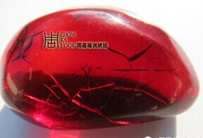 目前市场上的优化血珀是通过烤色优化的,早期还有通过“有色覆膜”来处理,现在的标准“有色覆膜”不属于优化了,也就是说“有色覆膜”处理出来的血珀在鉴定证书上会标注“外理(有色覆膜)”,所以这个工艺现在也不用在血珀上了。