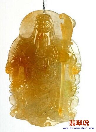 (8)黄翡 颜色从黄到棕黄或褐黄的翡翠,透明程度较低 。这一系列颜色的翡翠制品在市场中随处可见。它们的颜色也是硬玉晶体生成后才形成,常常分布于红色层之上,是由褐铁矿浸染所致。在市场中,红翡的价值高于黄翡,黄翡则高于棕黄翡,褐黄翡的价格又次之 。但也有因人的喜爱及饰品别具特色而使其价格有别于常规的情况。