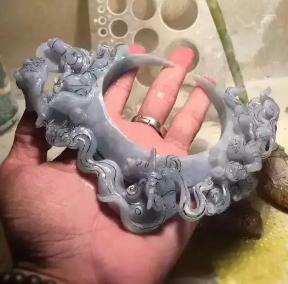 翡翠手镯切料剩下的那些边角料,不要拿去卖了,拿去雕一下也能出高货赚大钱啊!