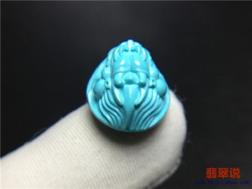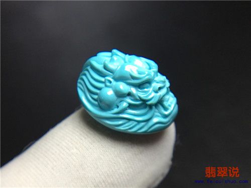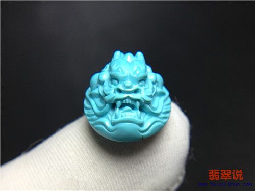 [有货] 原矿绿松石精品高瓷“龙头”戒面 重2.8克 总价1980 |