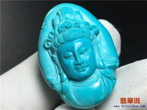 [有货] 原矿绿松石精品高瓷蓝“观音”挂坠 金龙山料 重13克 |