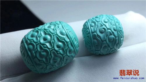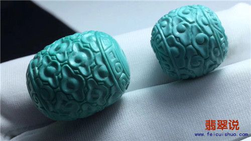 [有货] 原矿绿松石精品“云纹珠”两颗 干净无瑕 工料俱佳 规格见图 |