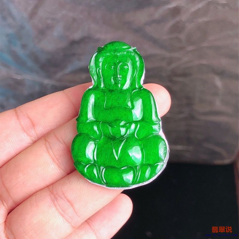 【天然A货翡翠】- 冰种正阳绿观音镶件
