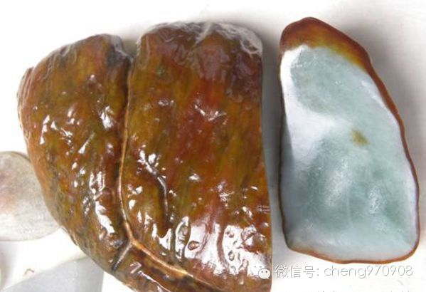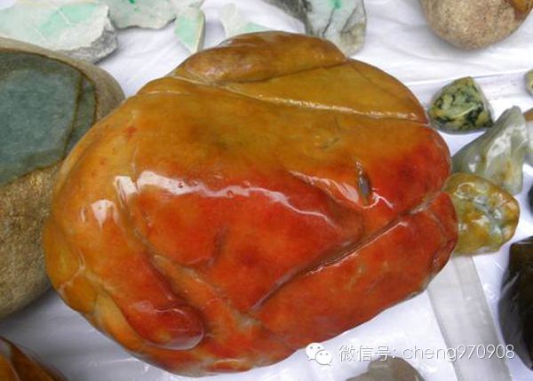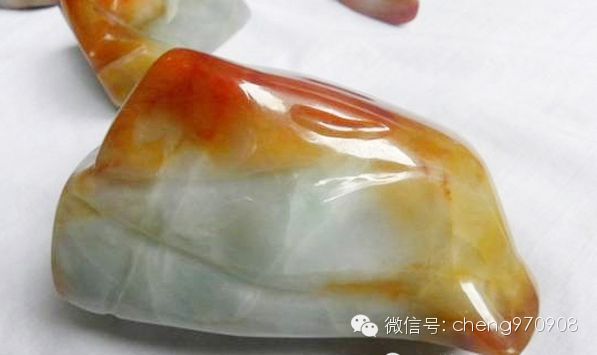 上图:烧红翡翠毛料
