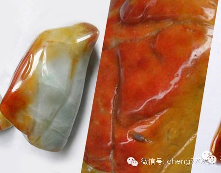 上图:烧红翡翠翡色界线模糊,呈逐渐过渡