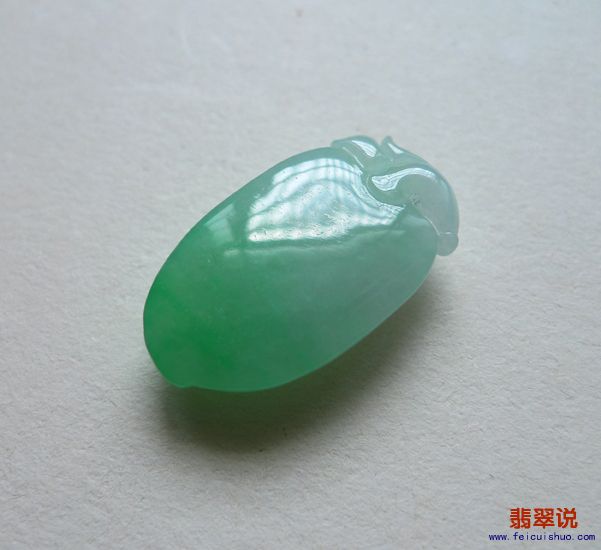 【翡翠价格】-2100元 【翡翠简介】-飘阳绿,水头足,形态饱满,玉质好,雕工精致,透光有细微小暗纹,有孔,佩戴效果最佳。 【原料产地】-缅甸。翡翠加工地:中国玉都,揭阳阳美 【邮寄费用】买家负责。寄顺丰快递