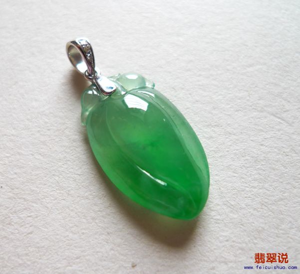 【翡翠名称】-【潮兴翡翠】W-69 福瓜 镶嵌18K白金扣头 玉坠吊坠 天然翡翠A货