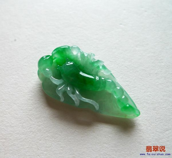 【翡翠名称】-【潮兴翡翠】W-74 蝎子 起光 如意头 阳绿 玉坠吊坠 天然翡翠A货