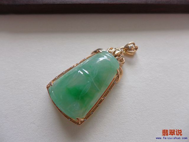 【翡翠价格】-2600元 【翡翠尺寸】-36.5*17.5*8.2MM 【翡翠重量】-4.05g 【翡翠简介】-冰糯种18K金伴钻满绿竹节 玉质柔美 完美无纹裂 起光 水头足种色好 款式高档大方