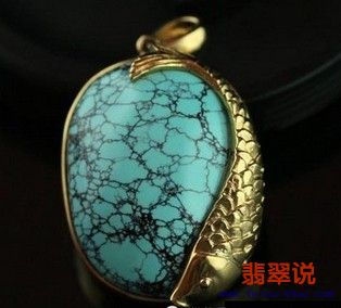 例图1,天然的绿松石表面也是有铁线的,并不是铁线只在凹处。